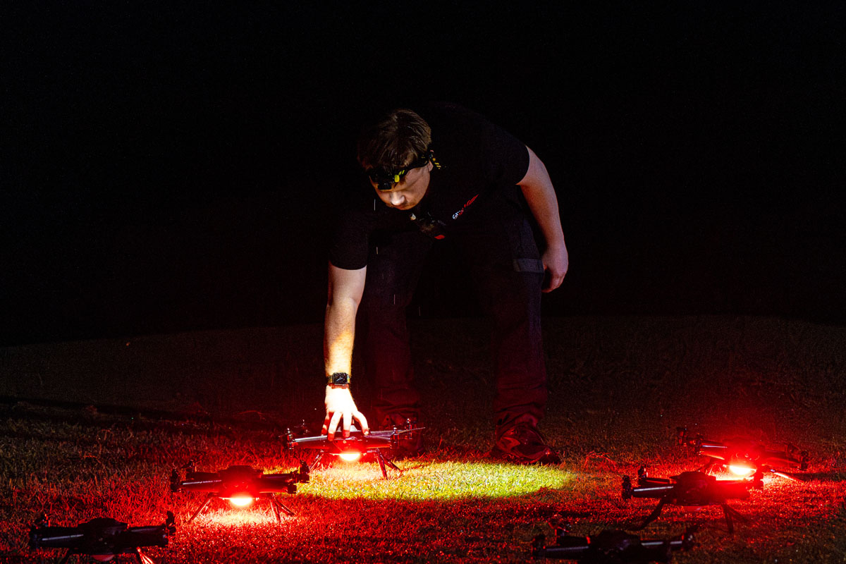 A drone show involves a fleet of drones, where each drone is equipped with LED lights. They are digitally choreographed to move in precise formations, that create stunning aerial displays. These shows can depict intricate patterns, logos, and animations, all synchronized to music. A drone show is a mesmerizing experience that captivates and delights audiences of all ages.